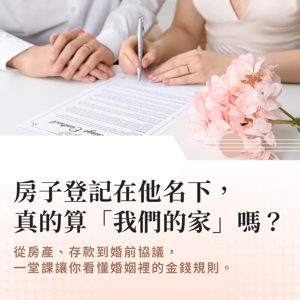 想了解婚前協議、房產登記、財產分配的正確做法,讓婚禮的浪漫之外,也多一份安心。
